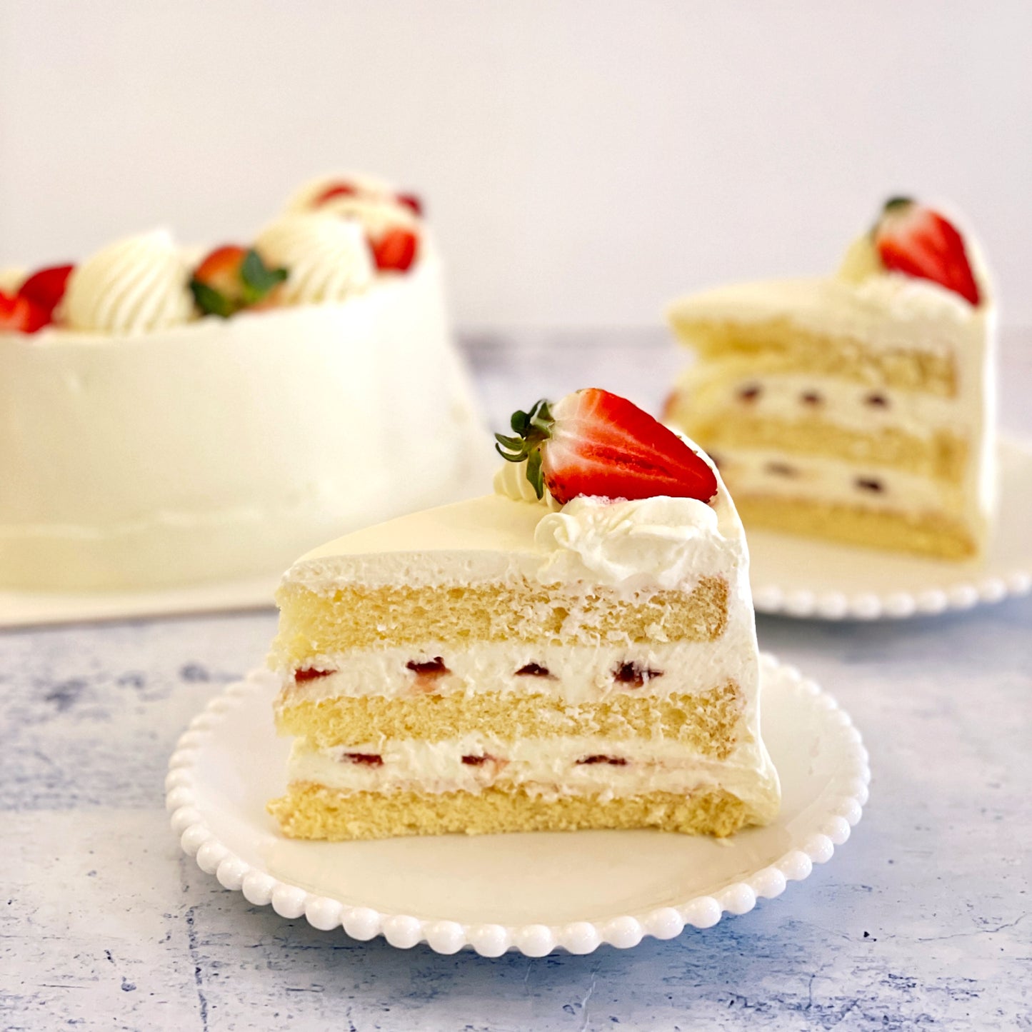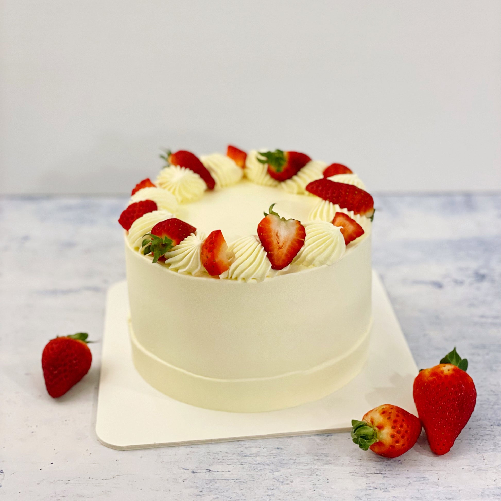 This cake is one of our most popular - 'everyone loves it' cake. It is a classic cake for any birthday celebrations or gatherings. The light and airy chiffon cake pairs perfectly with layers of fresh strawberries, strawberry Jam and whipped cream.